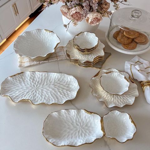Juego de vajilla con borde dorado electrochapado de cerámica moderna estilo INS, platos de cena occidentales para repostería de frutas y Hotel para plato de carne y pescado