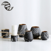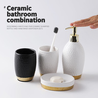 Juego de baño de cerámica dorado blanco y negro brillante creativo moderno para el hogar, hotel, venta al por mayor, juego de cuatro piezas con borde, juego de tres piezas