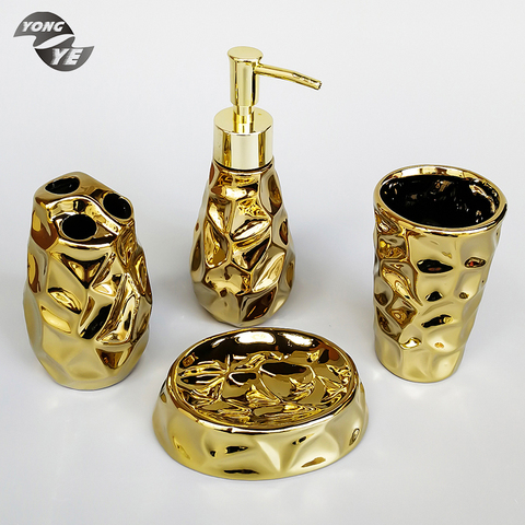 Accesorios de baño personalizados decorativos occidentales elegantes, baño de cerámica chapado en oro