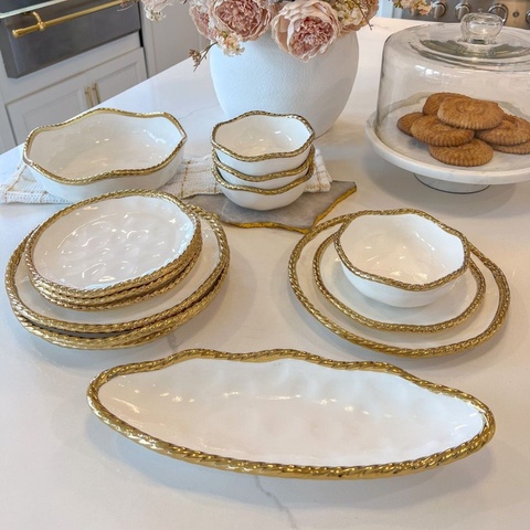 Plato de cena de cerámica Simple Ins moderno con borde dorado para restaurante, Fiesta en Hotel con pastel de fideos de frutas, borde dorado galvanizado